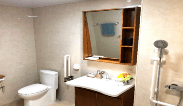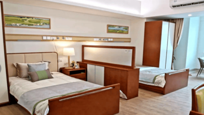 房间设计充分考虑长者生活习惯,采用适老化家具,配备紧急呼叫系统、防滑地板等安全设施。公共区域宽敞明亮,设有无障碍通道,方便长者行动,为长者打造安全、舒适的居住环境。