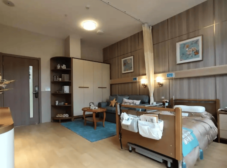 双人间:采用日式榻榻米设计,独具特色。人均居住面积达20平方米,配备隔音材料与适老化家具,为夫妻或亲友同住提供了温馨的共享空间。榻榻米的设计不仅增加了房间的实用性,还让长者们感受到一种别样的居住体验。在闲暇时光,他们可以一起坐在榻榻米上聊天、喝茶,分享生活中的点点滴滴。