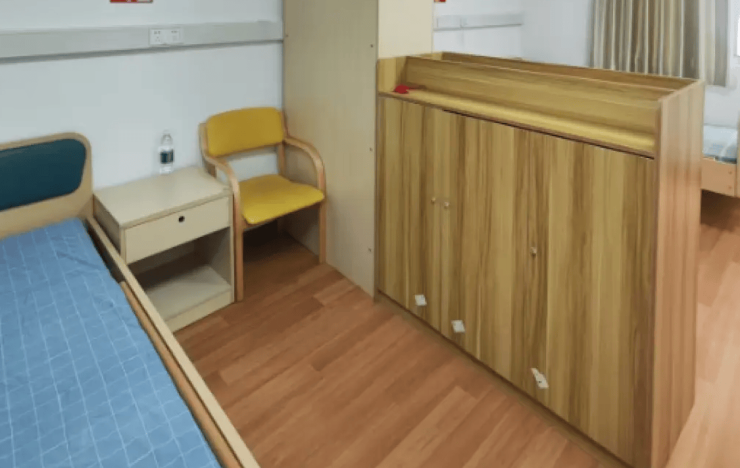 院区建筑总面积达8000平方米,采用6层低层设计,既规避了高层建筑带来的压迫感,也便于长者活动与紧急疏散。无障碍设计贯穿全院,公共区域铺设防滑地胶,走廊两侧设置双层扶手,电梯配备低位操作面板,全方位降低安全风险。房间内部经过专业适老改造,卫浴间安装助力扶手与坐式淋浴椅,床头配备可升降护理床,夜间感应地灯自动启停,从细节处保障长者居住安全。