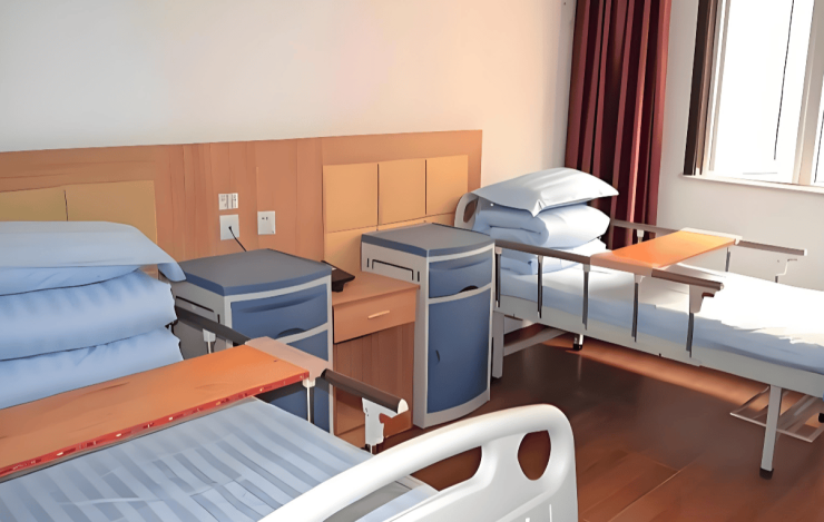 院区总建筑面积5800平方米,绿化覆盖率超60%,种植银杏、紫藤等乔木与20余种药用植物,搭配雾化系统与负氧离子监测屏,形成“四季有景”的立体绿化体系。PM2.5年均值较市区低35%,负氧离子浓度达3500个/cm³,形成天然生态屏障。建筑采用“四合院+连廊”布局,新中式主体融合多民族特色装饰:汉文化区采用江南园林风格,回族区域融入伊斯兰几何图案,藏族区域体现藏式彩绘与经幡元素。单人间配备智能护理床与独立卫浴,阳台可观赏庭院景观;双人间采用分床设计,共享客厅配置中央空调;家庭套房增设独立客厅与中央供氧系统。全院铺设防滑系数≥0.8的PVC地胶,家具圆角处理并加装防撞条,卫浴区L型扶手距地70cm,淋浴区水温智能恒定40℃。