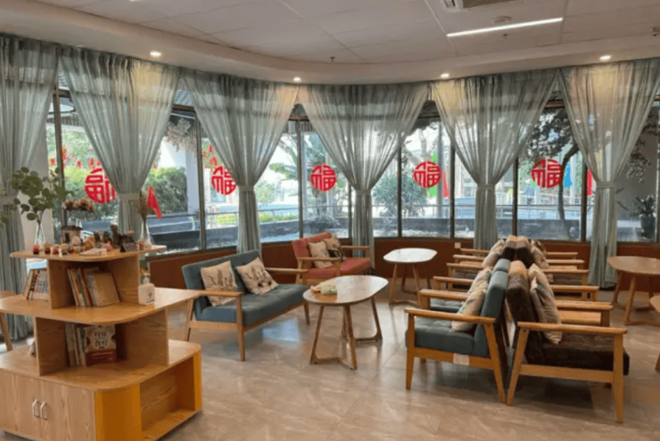 岭南文化空间:建筑设计深度融入镬耳墙、满洲窗等岭南元素,搭配现代简约美学,构建出兼具传统韵味与居住舒适度的空间。园区内设“怀旧超市”“老物件陈列室”等主题场景,通过模拟生活场景降低认知症长者的空间定向障碍;空中农场种植荔枝、龙眼等岭南果树,长者可参与播种、采摘、烹饪全流程,体验“从田园到餐桌”的乐趣。