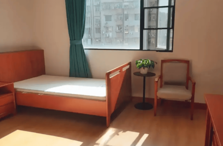 院内所有房间均配备独立卫浴、中央空调、智能呼叫系统及多功能升降床,防滑地板、无障碍通道、安全扶手等细节设计贯穿全域。单人间月费5000元起,双人间3000元起/床,VIP套房则增设独立客厅、厨房及观景阳台,满足不同经济条件长者的需求。房间内采用柔和的暖色调灯光,搭配适老化家具,营造出温馨如家的居住氛围。