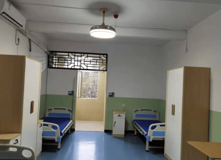 机构占地面积2369平方米,整体布局科学合理,以人性化设计为核心,兼顾舒适性与安全性。院内绿化覆盖率高,休闲庭院绿意盎然,空气清新,设有休闲步道与开放式活动区域,搭配适老化健身器材,供长者日常散步、锻炼。室内色调柔和,采光充足,通道宽敞无阻,全面采用防滑地胶铺设,家具均做圆角处理,规避碰撞风险,公共区域与房间内均配备扶手,细节之处筑牢安全防线,营造出温馨如家、静谧舒适的居住氛围。