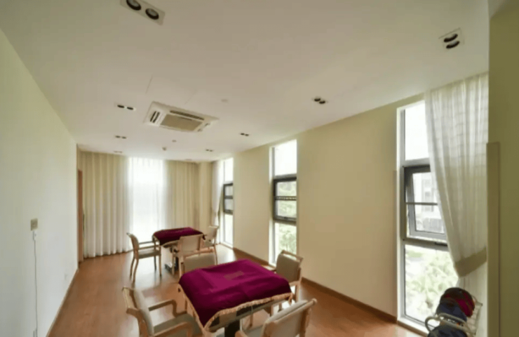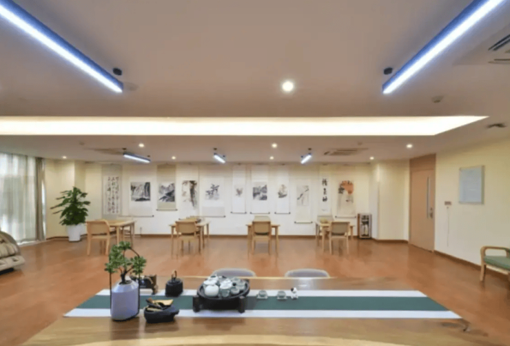 除居住空间外,中心配备了完善的公共配套设施,兼顾长者的运动、休闲与精神需求。内设恒温泳池、体感游戏室、光影疗愈室等特色设施,同时设有棋牌室、书画室、手工艺室、影视厅、茶艺室等公共空间,为长者提供多样化的休闲选择。屋顶农场规划环形步道与药草种植区,让长者可体验生态种植的乐趣,公共区域设置毫米波雷达防跌倒监测、电子围栏系统,实现全天候安全防护。