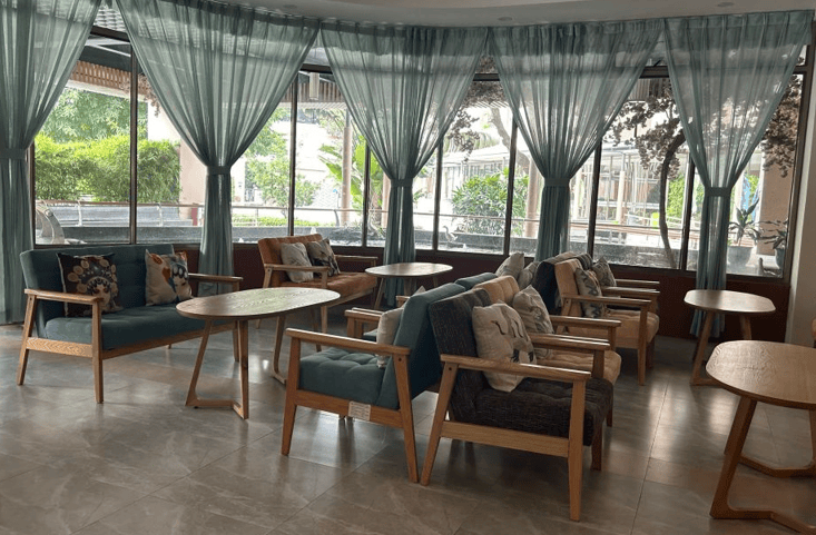 单人间内,270°观景阳台将湖光山色引入室内,智能护理床可调节至最舒适的弧度,防滑地胶与感应夜灯默默守护着夜间安全;双人间采用分床设计,中间共享的会客区摆着软塌与茶几,老人们常在这里下棋品茶,笑声穿过半开的木门;套房的独立厨房里,家属偶尔下厨烹饪家乡菜,锅铲碰撞声中,亲情在烟火气里升温。