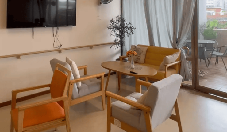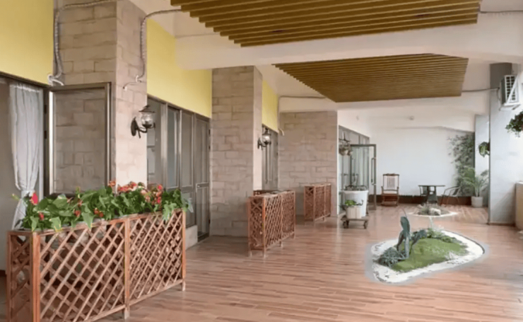 园区以现代简约风格为基底,融入镬耳墙、满洲窗等岭南建筑元素,8000平方米空间内,独立庭院、休闲步道与花园景观相映成趣。建筑层高仅4层,搭配医用电梯与无障碍通道,确保通行便捷。单人间配备270°观景阳台,双人间采用分床设计与共享会客区,套房含独立客厅与厨房,所有房型均标配防滑地胶、感应夜灯、圆角家具等200余项适老化细节。公共区域设置空中花园、棋牌室、KTV房等12类功能场室,采用吸音材料与防撞设计,兼顾社交需求与安全舒适。