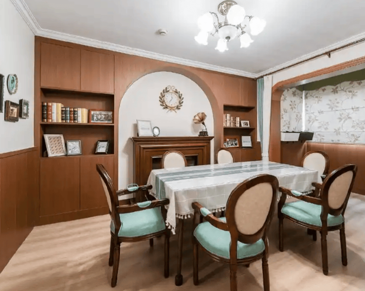 除了居住房间,公寓还设有餐厅、中庭休闲厅、图书馆、小型影院等公共设施。餐厅环境整洁优雅,为老年人提供营养丰富、口味多样的餐食。专业的厨师团队根据老年人的身体特点和饮食需求,精心烹制每一道菜肴,确保老年人能够摄入充足的营养,保持身体健康。
