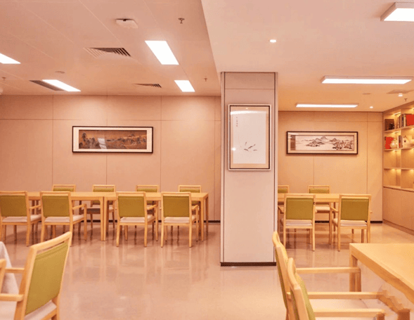 公共设施覆盖医疗、康复、娱乐全场景:中西医诊疗室配备DR影像系统、全自动生化分析仪等专业设备,与广东祈福医院共建急救绿色通道,实现30分钟内溶栓治疗的急救保障;康复区设有平行杠、站立架等设备,更创新推出水中运动疗法与VR情景模拟训练;400平方米多功能厅、书画室、棋牌室等文娱空间一应俱全,屋顶生态种植区则为喜爱园艺的长者提供亲近自然的平台,丰富精神文化生活。全院部署2000余个物联网传感器,构建“智能床垫-可穿戴设备-环境监测”三级感知网络,跌倒监测、紧急呼叫等系统响应时间不超过15秒,24小时守护长者安全。