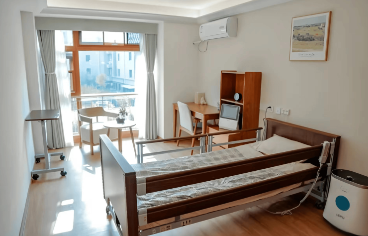 乐普养老院(半壁店)总建筑面积达1.2万平方米,规划床位255张,涵盖单人间、双人间及家庭套房三大功能模块。房间内采用适老化设计,圆角家具、防滑地砖、低位开关、智能护理床等设施一应俱全;卫生间配备助力扶手、紧急呼叫按钮及恒温花洒,确保长者使用安全。单人间配备独立卫浴、毫米波雷达睡眠监测仪;双人间设可旋转隐私屏风,人均面积达20平方米;家庭套房含独立客厅、厨房,提供私人医生与营养师定制服务。公共区域同样注重细节,走廊宽度≥1.8米,扶手高度85厘米,地面采用防滑系数≥0.8的PVC地胶;电梯配备盲文按钮与语音播报系统;全院覆盖5G网络,智能音箱、紧急呼叫拉绳等设备实现“无感化”养老。