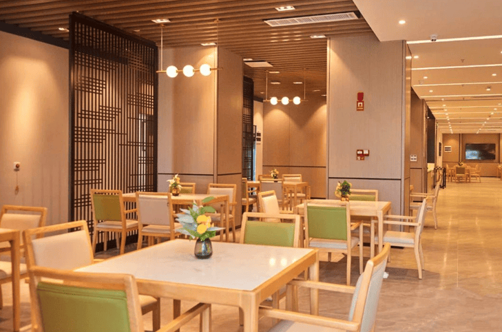 双人间面积30 - 40平方米,采用隔音玻璃隔断与分区储物柜,配置共享会客区与紧急呼叫系统。既保证了长者间的隐私,又满足了社交需求。套房面积80 - 100平方米,增设适老化厨房、观景阳台及家庭影院,支持家属短期陪护,为高端需求提供定制化选择,尽显温馨与舒适。