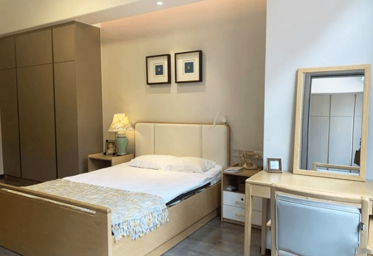 公寓的居住空间设计贴心周到。单人间面积40 - 50平方米,配备智能护理床、毫米波雷达跌倒监测系统及负离子空气净化器,适合独居长者。住在这里,长者能感受到科技带来的安全与便利,仿佛有贴心的守护者时刻相伴。