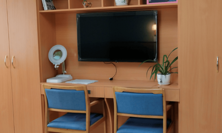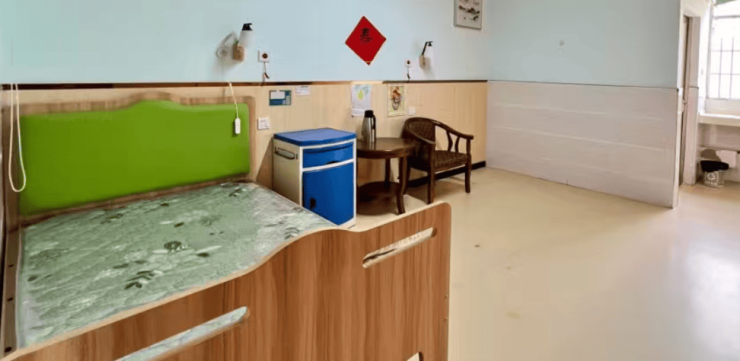 房间分为单人间(35㎡)、家庭套房(58㎡)、合居单人间(22㎡),均采用原木色家具,搭配防滑地胶、圆角桌椅及可调节高度的护理床(高度调节范围40-70cm)。所有房间配备独立卫生间(安装助浴椅、防滑扶手及紧急拉绳)、智能坐便器(具备温水冲洗、暖风烘干功能)、空调(带新风系统)及电视(可收看港澳台频道),床头设置紧急呼叫按钮(响应时间≤8秒)与智能照明系统(可通过语音或手机APP控制)。家庭套房增设独立厨房(配备电磁炉、微波炉)、会客区及直通记忆花园的阳台,便于认知症长者进行定向力训练(如通过阳台植物识别季节变化);合居单人间通过隔断设计保障隐私,同时设置公共客厅,供同楼层长者交流。