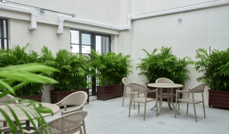 公寓总建筑面积3.8万平方米,规划500张床位,分设自理区、半护理区、全护理区及认知症照护专区。公共区域走廊宽度达1.2米以上,地面铺设防滑地胶,转角处均做圆弧处理;安装双层扶手与休息座椅,确保行动安全。房间内配备圆角桌椅、可调节高度护理床、恒温花洒及助力扶手,床头、卫生间等关键位置设有紧急呼叫装置。智能床垫可非接触式监测心率、呼吸频率,离床超10分钟自动预警,毫米波雷达跌倒监测系统实时响应异常情况。