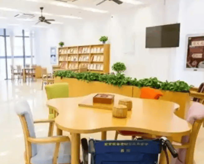 中心内的生态池塘,进一步丰富了生态景观层次,为长者增添了休闲休憩的好去处。池塘内养殖了灵动的锦鲤,种植了雅致的睡莲,锦鲤在水中自在嬉戏,睡莲在水面静静绽放,一动一静间,构成了一幅雅致的自然画卷。