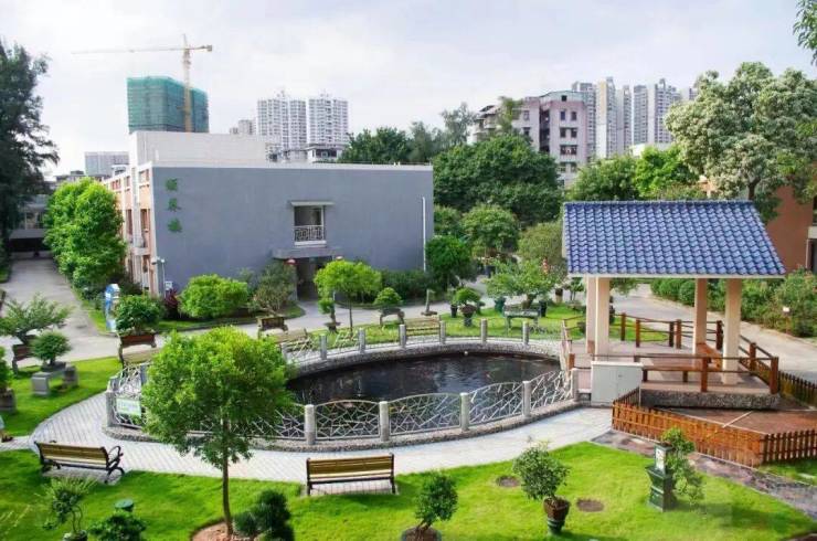 松鹤养老院不仅在规模和区位上独具优势,在环境设计方面也下足了功夫。机构以“一轴三园”景观设计将岭南园林元素融入养老空间,打造出了一个充满生机与活力的养老环境。建筑密度控制在28%以下,这意味着有更多的空间用于绿化和公共活动区域,让老年人能够享受到宽敞、舒适的生活空间。绿化率超40%,绿树成荫、花草繁盛,仿佛置身于一个美丽的花园之中。漫步在养老院内,呼吸着清新的空气,欣赏着美丽的风景,老人们的心情也会格外舒畅。