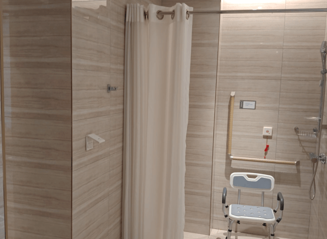 社区提供多种房型,面积从45㎡至150㎡不等,无论是喜欢独处的长者,还是希望与伴侣相伴的,都能找到合适的居所。房间内独立卫浴、智能护理床、紧急呼叫系统及适老化家具一应俱全。智能护理床的8项调节功能、卫浴间的贴心设计,都充分考虑了长者的使用需求。住在这里,仿佛被温柔呵护,每一处细节都让人感受到家的温暖与安心。