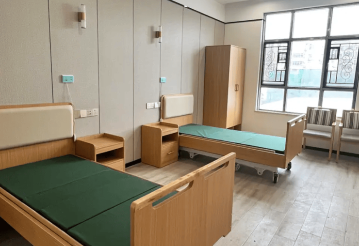 居住区规划科学合理,提供单人间、双人间及双人套间等多种房型,面积从30至50平方米不等,可满足不同长者的居住偏好。每间客房均配备专业护理床、独立卫生间及防滑地板,床头紧急呼叫按钮与房间无障碍扶手形成双重安全保障,既保障居住安全性,又兼顾生活私密性与舒适性。