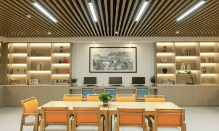 中心全程遵循无障碍设计理念,将安全与舒适融入每一处细节。公共区域走廊宽度达1.8米,配备轮椅坡道与安全扶手,电梯内设低位按钮及语音提示,适配长者行动习惯。屋顶花园采用无障碍规划,铺设健身步道并设置休憩座椅,种植四季花卉,为长者提供亲近自然的休闲空间。同时配备书画室、棋牌室、多功能厅等多元活动区域,全面覆盖长者日常休闲需求。