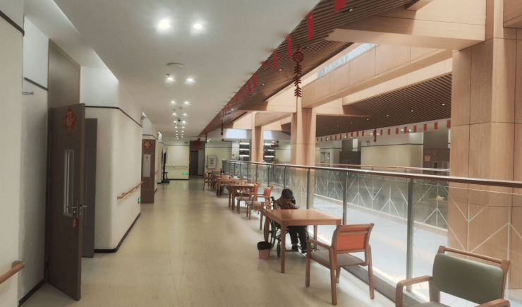 中心内部空间规划科学合理,兼顾安全性、舒适性与实用性,实现适老化与智能化双向赋能。公共区域采用防滑地胶与无障碍扶手设计,走廊宽度达1.8米,电梯内设低位按钮与语音提示,全程保障长者出行安全。功能分区丰富多元,设有200平方米的多功能活动厅、藏书逾千册的阅览室、书画创作室、棋牌室及顶层阳光花园,还开辟了适老化菜园,同时引入智慧养老系统与智能手环,全方位覆盖长者生活、休闲、安全等各类需求。