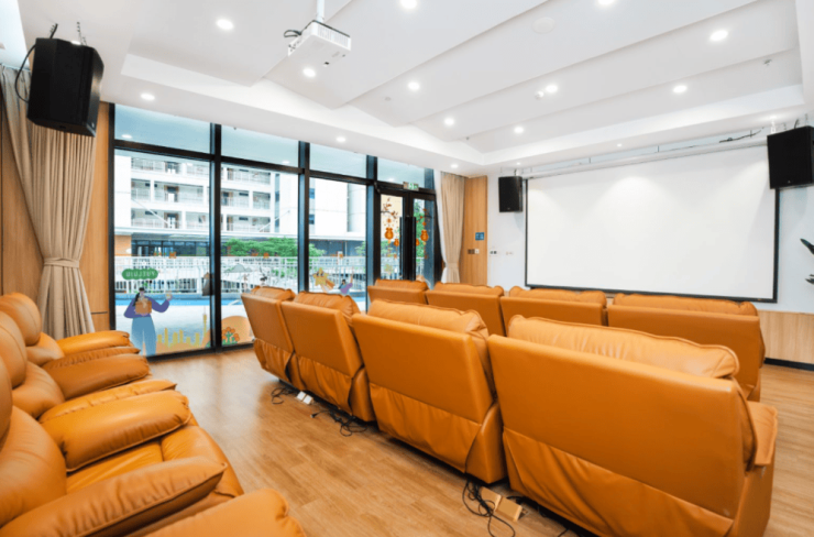 社区提供40至80平方米的单间至套房多种户型选择,所有房间均朝南布局并配备景观阳台,保障全天候自然采光与通风。全屋融入128项适老化细节,包括圆角防撞家具、3°防滑地面、毫米波雷达跌倒监测系统等安全配置,床头24小时紧急呼叫按钮可实现5秒快速响应。卫浴间配备可折叠助浴椅、恒温花洒及防滑地砖,套房户型增设独立客厅与厨房,搭配智能家居系统,支持语音控制灯光、空调等设备,兼顾安全与便捷。