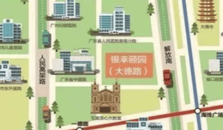 越秀银幸颐园(大德路)养护院位于越秀区大德路128号,地处北京路商圈与海珠广场交汇处,周边3公里内覆盖广东省中医院、广州医科大学附属第一医院等3家三甲医院,5分钟车程直达,构建“15分钟医疗急救圈”。项目毗邻地铁6号线一德路站,步行10分钟可达北京路步行街、圣心大教堂等文化地标,长者既能享受老城区的烟火气,又能便捷对接现代医疗资源。