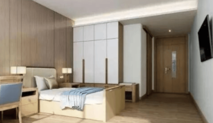 房型设计:单人间面积30-40㎡,采用暖色调装修,搭配独立卫浴、智能护理床及全景落地窗;双人间床间距超1.5米,配备隔音窗帘;家庭套房面积60㎡,含独立客厅、适老化厨房,适合子女短期探访。