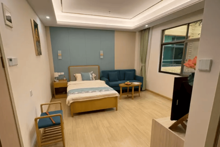 养老院总建筑面积达15000平方米,规划床位800张,涵盖单人间、双人间及三人间三种房型。单人间面积20—35平方米,配备独立卫浴、全景落地窗及智能温控系统;双人间面积30—45平方米,朝南布局,采光充足;三人间面积50—60平方米,共享公共活动空间,适合经济型需求。所有房间均采用无障碍设计,地面铺设医用级防滑地板,家具边缘采用圆角处理,走廊设置双层扶手,卫生间配备紧急呼叫终端与智能跌倒监测仪,从细节处保障长者安全。