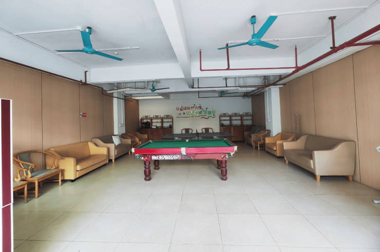 和乐双人套房,面积适中,分床隔断设计既保障了长者的隐私,又便于相互照顾。共享客厅悬挂着岭南文化装饰,营造出温馨和谐的氛围,让长者们在这里能够感受到家的温暖。长者们可以在客厅里一起聊天、看电视,分享生活中的点滴,增进彼此之间的感情。