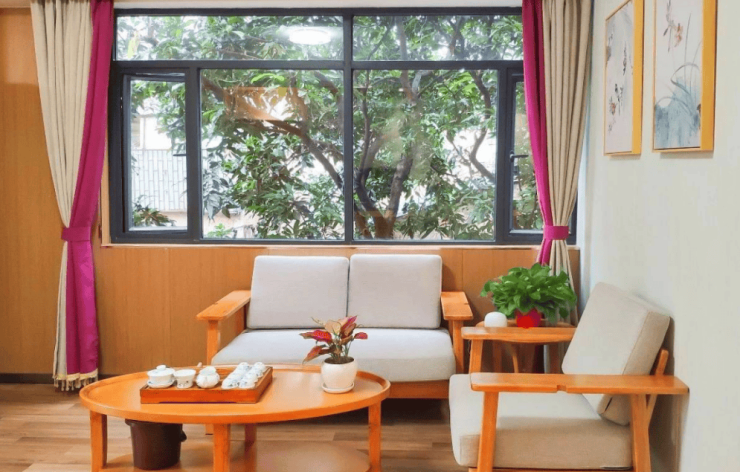 院内打造2000平方米中央花园,绿化覆盖率达40%,年均PM2.5浓度低于25μg/m³,负氧离子浓度充足,为长者提供清新宜居的自然环境。花园以岭南园林为灵感,设置环形步道、休憩凉亭与四季花径,漫步其间可感受四季景致流转。精心挑选的绿植不仅美化环境,更营造出“推窗见绿、移步换景”的惬意氛围,为长者户外活动提供理想场所。