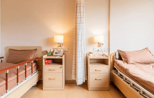 毫米波雷达跌倒监测系统时刻守护着长者的安全;可调节进口护理床让长者能根据自己的需求调整姿势,睡得更加舒适;无障碍卫浴设施,如坐式淋浴器、恒温花洒、防滑地胶等,为长者的日常生活提供了便利。还有那融入的40余处适老化细节,圆角家具防止磕碰,床头紧急呼叫按钮直连护理站,智能夜灯自动感应起夜需求,供氧设施应对突发状况,让人感受到无微不至的照顾。