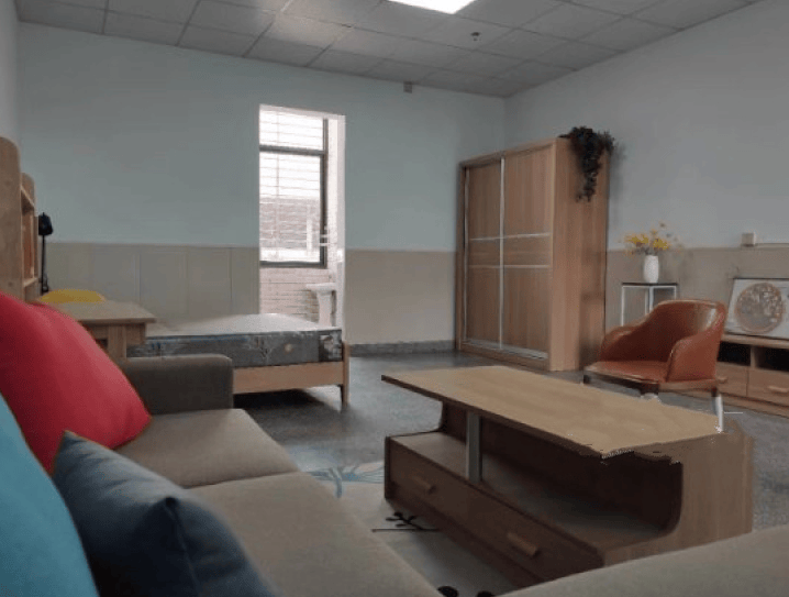 室内空间采用新中式装修风格,以原木色为主调,搭配暖黄色灯光,营造温馨居家氛围。3.5米层高设计消除压抑感,全屋配备新风系统,PM2.5实时监测确保空气质量。每层设置共享厨房,长者可与护理员共同烹饪家乡美食,找回生活仪式感。