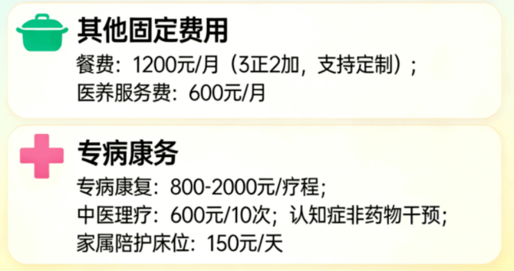 家属陪护床位:每天收费 150 元,为前来陪护的家属提供了便利的休息场所,让家属能够更好地照顾长者,同时也减轻了家属的经济负担。
