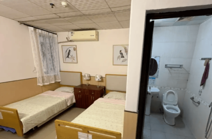 院内规划有186张备案床位,涵盖多种房型选择。经济型多人房布局紧凑实用,标准双人间面积25-30平方米,豪华单人间则达35-40平方米,满足不同居住偏好。所有房间均配备独立卫浴、中央冷热水系统、空调及彩电,卫浴区安装L型扶手与防滑地胶,家具采用圆角设计,床头灯配备夜光开关,细节处尽显适老关怀。