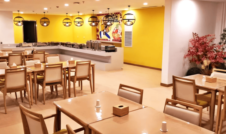 公寓总建筑面积1.4万平方米,规划147间房、279张床位,涵盖单人间、双人间及套房三大房型。单人间面积30—45㎡,配备独立卫浴、中央空调、新风系统及电动护理床,部分房间增设观景阳台与迷你吧台;双人间面积35—50㎡,两张护理床分置两侧,共享起居区与阳台,配备分区呼叫装置;套房面积60—80㎡,增设独立客厅、双卫浴、开放式厨房及会客区,提供定制化智能家居系统。全屋采用圆角防撞家具、防滑地砖、低位开关等适老化设计,卫生间配备助浴椅、扶手及紧急呼叫按钮,卧室设置起夜地灯与应急灯,全方位降低安全风险。公共区域设500㎡医务室、康复理疗室、多功能活动厅、书画室及24小时图书馆,满足多元化需求。