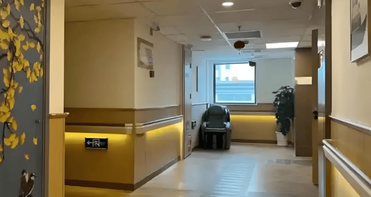 为了确保长者的居住安全,护理院在细节处下足了功夫。地面采用了防滑设计,有效降低了长者滑倒摔伤的风险;卫浴间进行了无障碍改造,配备了扶手、座椅等设施,方便长者使用;走廊两侧安装了助行扶手,为行走不便的长者提供了支撑和助力。凭借这些贴心的适老化设施,护理院获评上海市养老机构安全示范单位,让长者住得安心,家属也能放心。