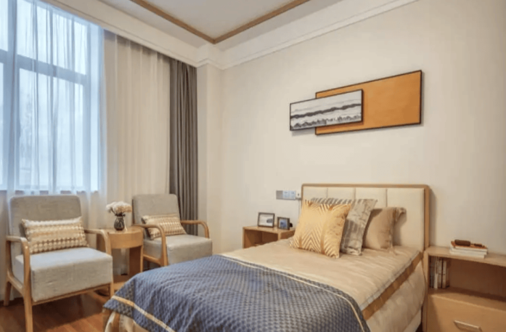 机构设施以适老化为核心,深度融合智慧科技与实用功能,全方位保障长者居住安全与生活品质。居住空间涵盖单人间、双人间及套房,均采用朝南设计,配备智能床垫、无障碍卫生间、紧急呼叫系统等基础适老设施,圆角家具、防眩光照明、恒温淋浴等细节设计,最大化降低居住风险。公共区域拥有3000平方米超大活动空间,涵盖认知训练区、棋牌区、书画区、图书馆等,户外康复花园种植芳香植物,屋顶农场设置园艺治疗区,满足长者休闲、娱乐与社交需求。