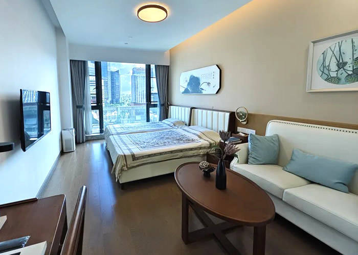 房间类型丰富多样,涵盖单人间、双人间及家庭套房,满足不同长者的居住需求。房间内配备可升降护理床,方便护理人员为长者提供服务;无障碍卫浴设计让长者们使用更加安全、便捷;紧急呼叫终端则让长者们在遇到紧急情况时能够及时求助。