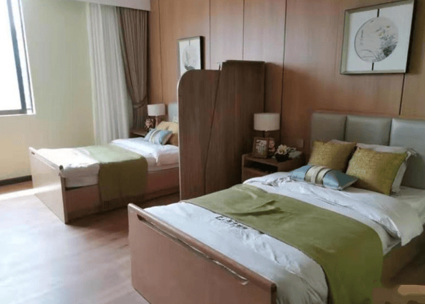 主楼16层、建筑面积1万平方米的建筑空间,以“适老化”为核心设计理念。单人间(25-35㎡)配备独立卫浴、智能呼叫系统及圆角防撞家具,降低意外风险;双人间(20-30㎡)通过分区储物柜与共享会客区,平衡隐私与社交需求;VIP套间(40-50㎡)增设独立厨房与家庭影院,满足高品质生活追求。全楼采用无障碍通道,走廊扶手高度依据长者平均身高定制,毫米波雷达跌倒监测系统24小时运行,2024年数据显示其预警准确率达99%,为安全保驾护航。