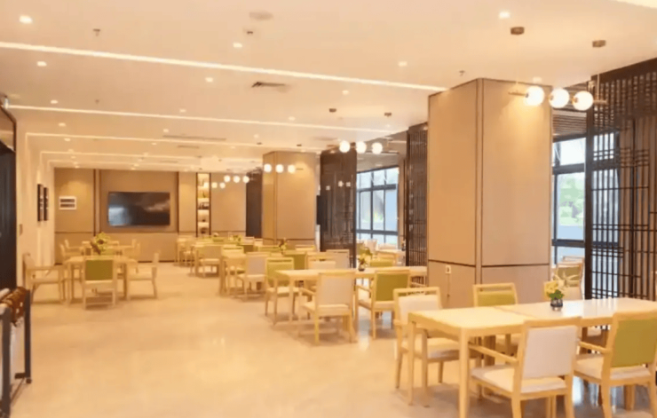 公寓提供单人间、双人间及套房三种房型选择,适配不同长者的居住偏好。单人间面积30至50平方米,空间开阔通透;双人间面积25至45平方米,采用隔音玻璃隔断设计,兼顾陪伴与私密;套房面积80至120平方米,增设适老化厨房、观景阳台及家庭影院,支持家属短期陪护。所有房型均配备独立卫浴,地面铺设防滑地胶,家具边角做圆弧处理,走廊与卫浴区域安装双层扶手。房间内还配置了紧急呼叫系统、智能护理床及负离子空气净化器等设备,从安全与舒适双重维度保障长者居住体验。