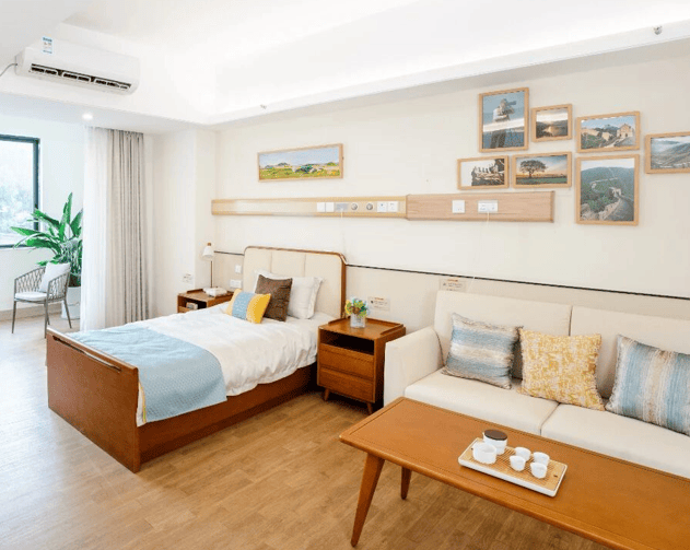 周伯的房间在7楼东向,270度的落地窗让白云山的轮廓清晰可见。但更让他满意的是那些“看不见的设计”:感应夜灯会在他起夜时自动亮起,适老化护理床的护栏能随他翻身调整高度,就连卫生间的扶手都包着防滑的硅胶套。“上个月我女儿来,想帮我擦桌子,结果发现所有家具都是圆角的——她说‘连我都想住进来’。”
