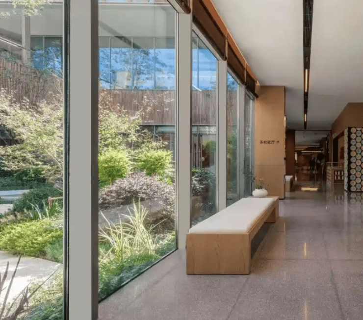 隽芳华养老社区打造了丰富多元的公共空间,满足长者生活、休闲、社交与代际互动需求。社区内5000㎡中央会所功能齐全,涵盖图书馆、老年大学、水疗馆及商业街,为长者提供学习、放松与消费的一站式场景;负一层设置解忧杂货铺、花艺工坊、创意集市等互动空间,激发长者参与热情,增进邻里情谊。隽芳华养老社区规划1.1万平方米商业街,引入超市、药房及中医理疗中心,构建“15分钟生活圈”,日常采购、就医调理无需远行。同时社区专设儿童乐园与亲子活动室,为家庭探访、代际相处提供专属空间,助力维系亲情纽带。