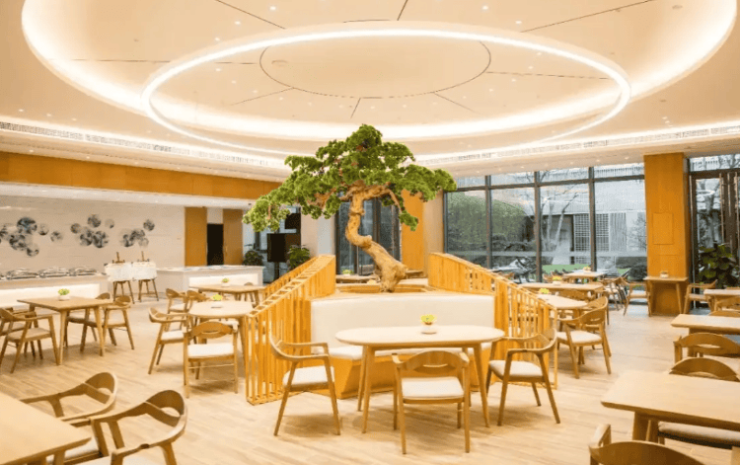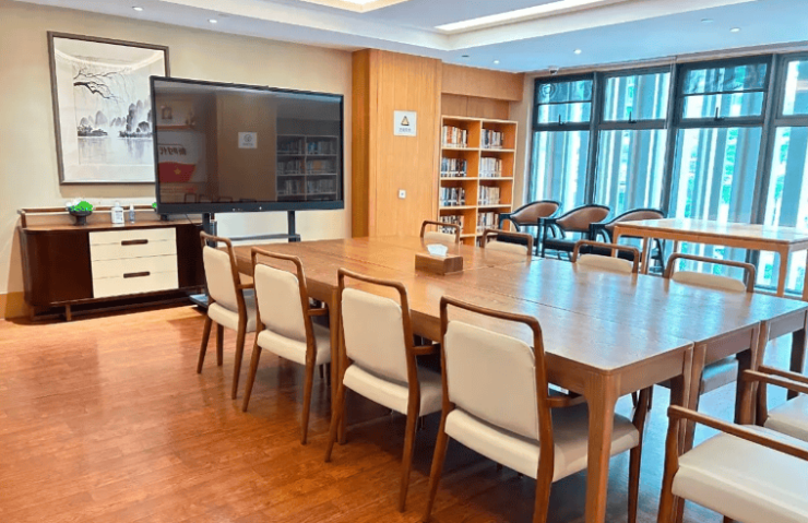 公共区域划分为五大功能区,配套设施齐全完善,满足长者生活、休闲、娱乐等多方面需求。文化娱乐区涵盖图书室、影音室、健身房、书画茶艺区等,为长者提供多样化的休闲选择;生态景观区包含中央花园、屋顶疗愈花园及健康步道,绿植覆盖率达60%,是长者散步、休憩的绝佳场所;生活服务区设置共享厨房、洗衣房、理发室、社区超市等设施,支持长者自主打理生活琐事,保留生活主动权;智慧管理区布局保利自主研发的智能化系统,为长者生活提供便捷支撑;同时配备专属活动空间,满足长者开展集体活动的需求。