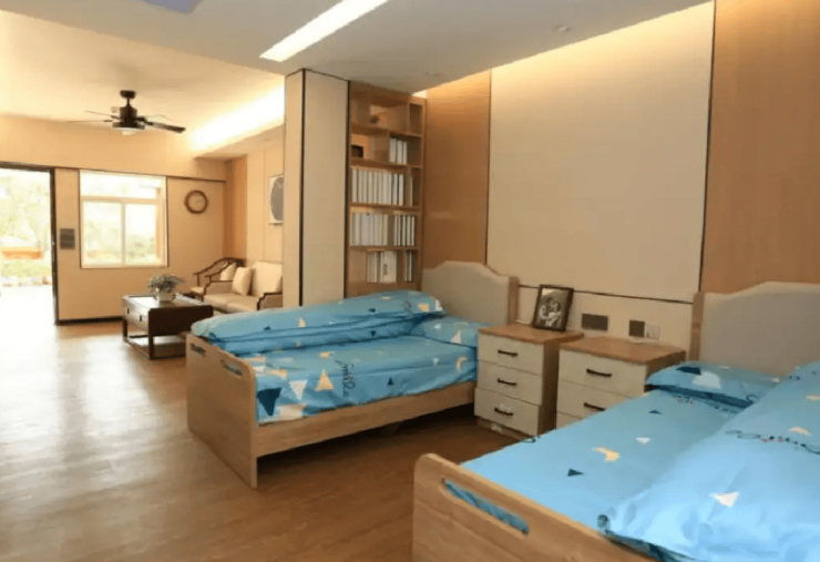 院内规划近900张床位,提供单人间、双人间、三人间及套房四种房型,面积从15平方米至70平方米不等,适配不同居住需求。单人间配备独立卫浴、智能护理床及负离子空气净化器;双人间采用隔音玻璃隔断与分区储物柜,兼顾隐私与收纳;三人间标配适老化家具及公共活动区;套房增设客厅、厨房及观景阳台,营造居家式居住体验。