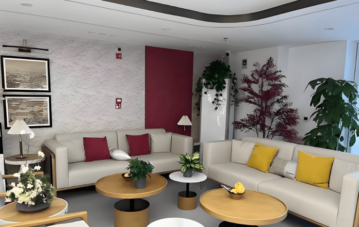 中心总建筑面积2.7万平方米,规划床位560张,其中168张为普惠托底床位优先保障低保、失独等特殊群体。建筑采用“U型庭院+垂直绿化”设计,中央设1500㎡生态花园,种植国槐、玉兰等本土树种。居住空间涵盖单人间(20-30㎡)、双人间(25-40㎡)及家庭套房(40-45㎡),均配备独立卫浴、紧急呼叫系统及智能温控设备,部分房型增设观景阳台。公共区域设置5000㎡空中花园、康复中心、多功能厅及VR认知训练室,屋顶农场年产有机蔬菜1.5吨直供食堂。全楼铺设防滑系数R12级地胶,走廊宽度1.8米且双侧配备抗菌涂层扶手,无障碍电梯覆盖率100%,毫米波雷达跌倒监测系统响应时间≤2秒,形成“建筑-景观-设备”三位一体安全防护体系。