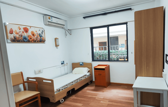 颐福居提供多种房型供长者选择。独立豪华单人套房面积60 - 80平方米,配备医用级护理床、智能马桶等先进设备,24小时生命体征监测仪和紧急呼叫系统为长者安全保驾护航;和乐双人套房面积40 - 60平方米,分床隔断设计,岭南文化装饰增添温馨氛围;居家式套房面积90 - 120平方米,含独立厨房、客厅及观景阳台,支持家属短期陪护。不同房型满足不同需求,让长者住得舒适、安心。