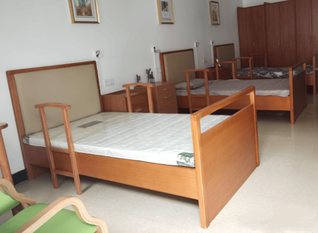 所有房间均配置电动护理床、智能马桶、紧急呼叫系统及新风系统,家具采用圆角防撞设计,走廊设置连续扶手,地面采用防滑地胶。这些贴心设计,全方位保障长者安全,让长者住得舒适、安心,仿佛置身于温馨的家中。