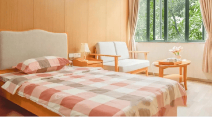 在居住空间的设计上,乐怡康充分考虑了长者的不同需求,进行了分层定制。单人间面积45—60平方米,空间宽敞明亮。配备的智能护理床能够根据长者的身体状况进行调节,提供舒适的睡眠体验。毫米波雷达跌倒监测系统时刻守护着长者的安全,一旦检测到跌倒情况,会立即发出警报。恒温花洒让长者在洗浴时感受到适宜的水温,避免着凉或烫伤。药品冷藏格则方便长者存放需要冷藏的药品,确保药品的疗效。房间采用南北通透设计,日照时长每日超6小时,充足的阳光能够杀菌消毒,促进长者的身体健康。