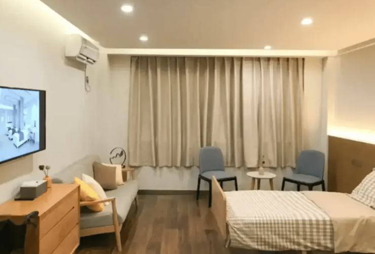 机构共开放88张养老床位,采用多元化房型设计,精准匹配不同长者的居住需求。房型涵盖单人间、双人间及多人间,其中单人间面积25—35平方米,配备独立卫浴与专属储物柜,保障长者居住私密性;双人间面积20—28平方米,采用隔音玻璃与分区收纳设计,兼顾陪伴感与舒适度;多人间以6—8人布局为主,床位间距合理,确保每位长者都有充足活动空间。所有房间均配备护理床、床头呼叫系统、床头灯及电视等基础设施,卫生间内设有无障碍洗手池与安全扶手,全方位满足长者日常居住需求。