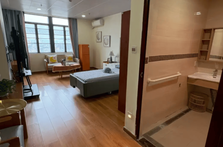 机构依托15层现代化楼宇,打造多层次居住空间,4层及10-16层为养老公寓区域,房型涵盖单人间、双人间及VIP套房,全面适配不同长者的居住偏好。单人间面积35-45平方米,布局通透采光充足;双人间采用隔音玻璃隔断与分区储物柜设计,保障隐私与收纳需求;VIP套房面积60-80平方米,配备独立客厅、厨房及观景阳台,支持家属短期陪护。所有房型均标配独立卫浴,室内空间宽敞明亮,通风系统完善,营造出兼具私密性与舒适度的居家氛围。