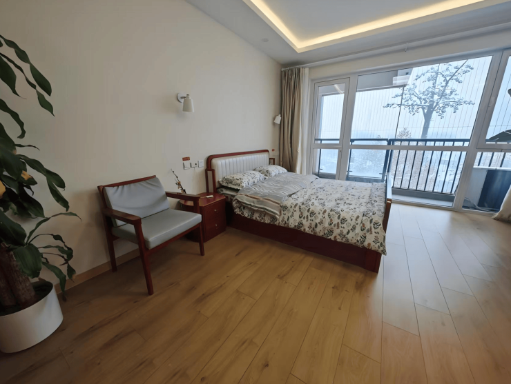 公寓采用“一核两翼三区”立体化布局,总建筑面积近10万平方米,规划床位1500张,涵盖单人间、双人间、家庭套房及VIP护理单元。活力颐养区单人间面积30-40㎡,配备独立卫浴、智能马桶及床头紧急呼叫系统;双人间采用L型隐私隔断设计,面积50-60㎡,共享客厅与阳台;130㎡豪华套间配置独立客厅、高端适老家电与观景阳台,支持个性化软装定制。失能照护区配备双护理床联动系统、医用级制氧机,医护配比达1:3;认知症专区创新还原老北京胡同场景,打造怀旧杂货铺、时光邮局等沉浸式空间,通过怀旧疗法延缓认知衰退。公共活动区与生态景观无缝衔接,设5000㎡“睿邻中心”,涵盖影音室、书画坊、康复大厅及室内恒温泳池,满足多样化休闲需求。